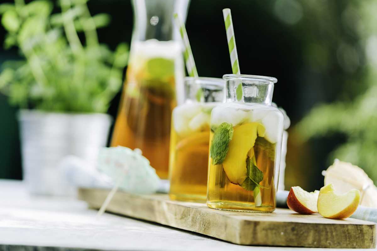 Sustituye los resfrescos azucarados por té de menta frío. Puedes endulzar con un poquito de miel y añadir limón para obtener un sabor más refrescante.